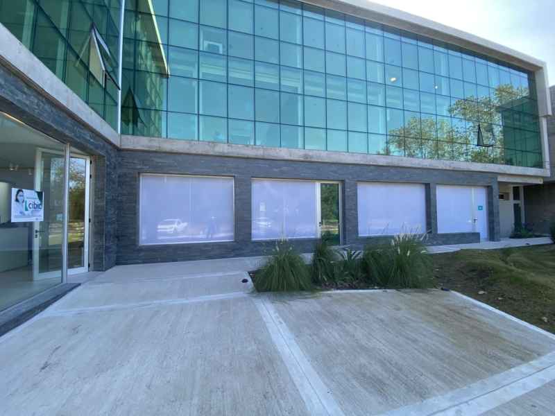 Sobre calle Houssay se proyectó el eje institucional-religioso, el cuál concentra la capilla y las oficinas de la Asociación Católica San Patricio, vinculadas por un atrio a cielo abierto, que