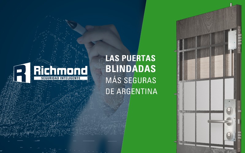“La principal diferencia es la resistencia y el cierre, las puertas de seguridad son puertas inyectadas con espesores muy finos y solo cuentan con cierre frontal, en cambio las puertas blindadas Richmond tienen una estructura interior con caño de acero reforzado más una placa de acero de 2,5 mm de espesor, sumado a esto nuestras puertas cuentan con un sistema de cierre multi-anclaje que traban la puerta hacia los cuatro lados del marco.