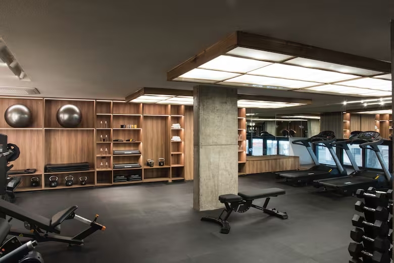 Los espacios de bienestar también juegan un papel crucial: la sala dedicada al yoga y a ejercicios de relajación está totalmente equipada y el gym cuenta con tecnología de última generación. Y en el rooftop, una piscina de nado de 17 metros se extiende ofreciendo vistas panorámicas de la ciudad y el río