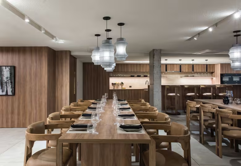 El complejo de 22 pisos en la esquina de Santa Fe y Aráoz, en pleno Palermo ofrece un SUM con una lounge Kitchen, con mucho diseño, decoración y cocinas bien equipadas ideales para invitar a chefs que cocinen para invitados.