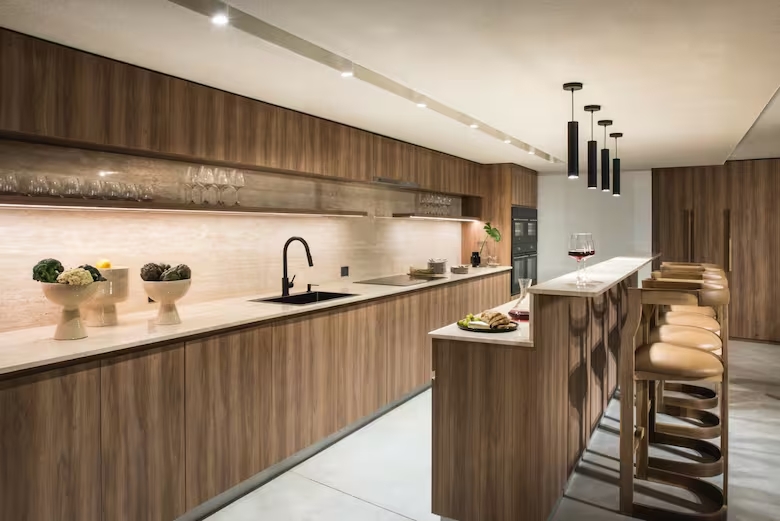 Además un imponente lounge-great kitchen, pensado para encuentros y eventos”, este complejo de residencias que se integra armónicamente al entorno privilegiado de la zona, cuenta con 5 pisos y una fachada con paneles corredizos para tamizar el sol.