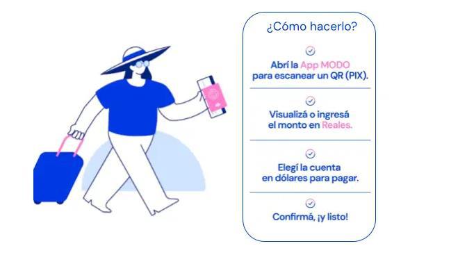 Ahora es posible pagar consumos con PIX -el sistema de códigos QR instantáneos de Brasil- en forma directa desde la APP MODO, utilizando los dólares de la cuenta de Banco Macro.