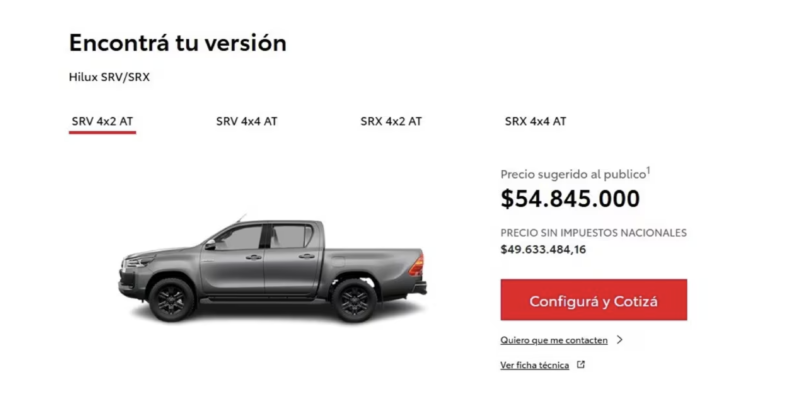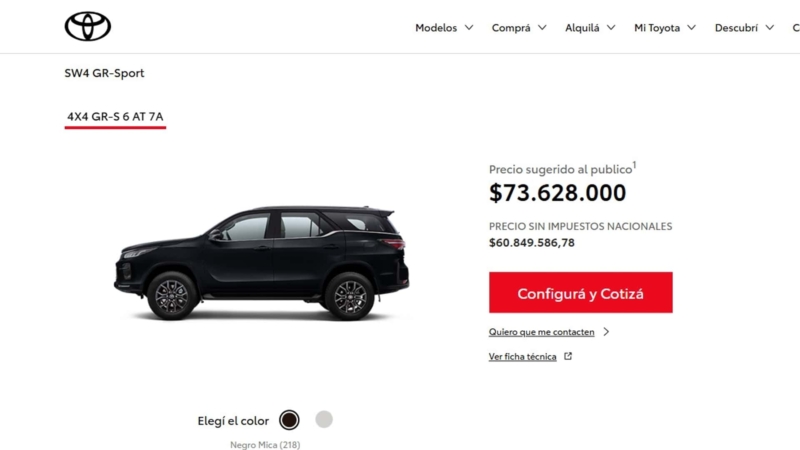 La marca japonesa también detalló los costos con y sin impuestos nacionales de los siguientes modelos: SW4 GR-Sport $73.628.000 (sin impuestos $60.849.586) HIACE Furgón $53.644.000 (sin impuestos $48.546.606), entre otros.