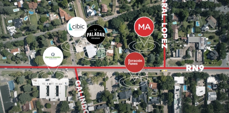 El socio gerente de MA Propiedades recalcó la “ubicación totalmente estratégica” en la que está emplazado el predio, ya que, además de encontrarse sobre una arteria clave de Funes, en lo que respecta a movimiento urbano y comercial, se halla a pocos metros de: el complejo Estación Funes, que “tiene un funcionamiento muy bueno”, destacó; del sanatorio privado (el primero en la ciudad) que días atrás inauguró Grupo Oroño; de Paladar, de colegios, del Laboratorio Cibic y de calle Galindo, “que fue repavimentada de punta a punta y comunica la ruta con la autopista”, apuntó.