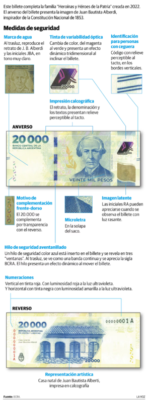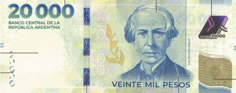 El billete de $ 20 mil lleva a Alberdi, uno de los próceres favoritos de Javier Milei. Además, como ilustración central del reverso del nuevo billete estará la recreación de la casa natal de Alberdi.