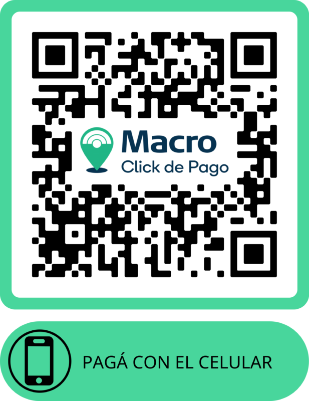 Permite pagar con tarjetas de débito y crédito de todas las marcas y de todos los bancos, o bien por débito en cuenta bancaria (Debin). Con las Tarjetas de Crédito de Banco Macro se puede abonar en hasta 6 cuotas sin interés.