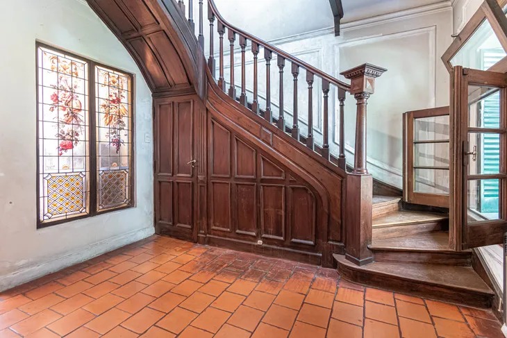 La unidad en venta es el chalet número 11. La propiedad tiene 280 metros cuadrados cubiertos, una terraza y un sótano. Posee 5 ambientes y dos baños. Se conservan allí escaleras de madera, vitraux y otros elementos que la vuelven única.