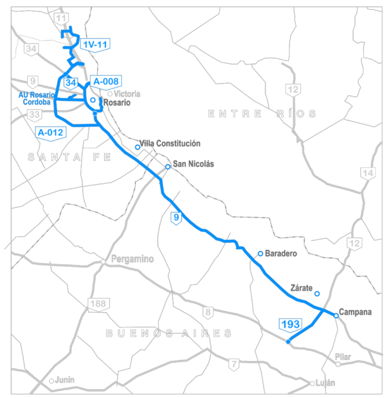 Las obras que comprenderán el tercer carril en ambas manos, forman parte de un plan de obras viales sobre el Corredor E, integrado por las rutas nacionales que se indican en el Gráfico