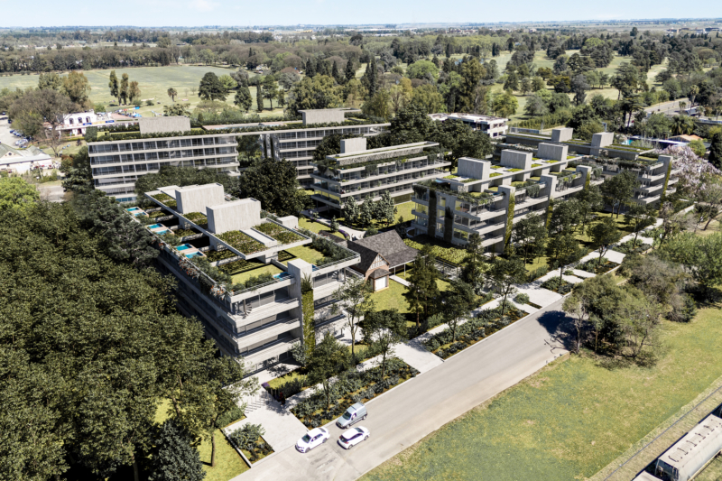 Con una propuesta arquitectónica de vanguardia firmada por Gagliardo Arquitectura, el proyecto equilibra la preservación del patrimonio histórico y forestal con modernas tipologías de vivienda que integran los espacios interiores y exteriores, todo en un entorno verde característico de Fisherton.