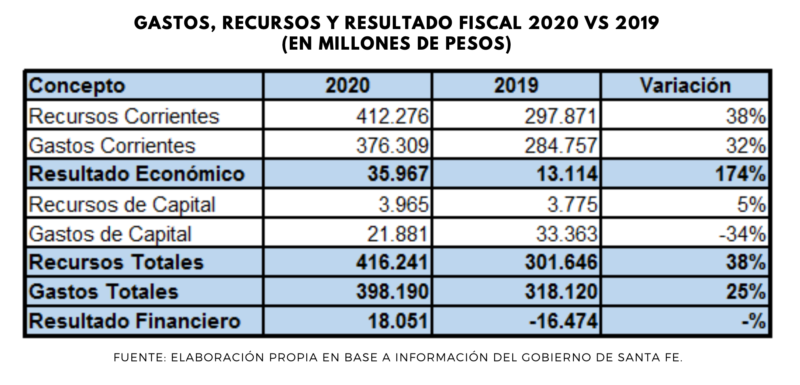 Santa Fe cerró el ejercicio fiscal 2020 con un superávit financiero. El resultado se explica por una expansión de los ingresos por encima de los gastos provinciales. Precisamente, los recursos subieron 13 puntos porcentuales más que los egresos el año pasado. Sin embargo, si se tienen en cuenta los resultados obtenidos en los últimos 10 años, el balance se torna desfavorable: 7 déficits contra 3 superávits, dejando en evidencia el carácter estructural del déficit en las finanzas provinciales. Recientemente, la provincia publicó los datos del cierre del ejercicio fiscal 2020. De acuerdo a los mismos, el resultado fiscal para el período 2020 fue de $18.051 millones. Si se consideran los ingresos y egresos de carácter corriente, el resultado económico registró un ahorro de $35.967 millones.