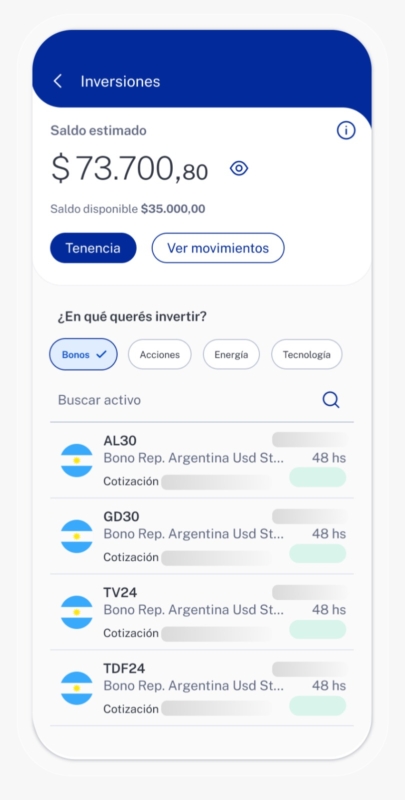 “Con una cuenta comitente sin costo de apertura ni de mantenimiento, comprar bonos con Ualintec Capital a través de la app de Ualá es muy fácil”, aseguran. La plataforma incluye filtros por categoría y por diferentes criterios (precio, variación y orden alfabético), buscador de tickers -código utilizado para identificar los bonos- y un timer que asegura la cotización por 20 segundos, con el precio en pantalla tanto para la compra como para la venta. En lo que refiere a pasos a seguir, se debe: ingresar a la opción “CEDEARs, Acciones y Bonos” dentro de la sección “Inversiones”, elegir el bono que se quiera adquirir, completar la cantidad de nominales deseada y hacer click en comprar.