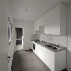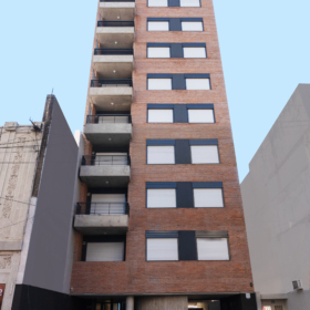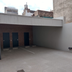 Construido entre medianeras, posee un ingreso peatonal y uno vehicular con 5 cocheras y sus respectivas bauleras.