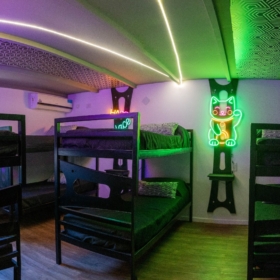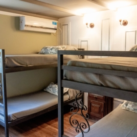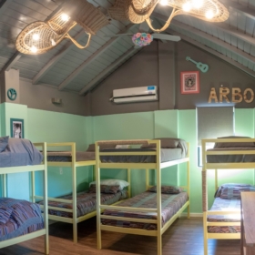 En sus orígenes, La Arbolada contaba con capacidad para alojar a unos 20 huéspedes, cifra que se duplicó con las ampliaciones recientes. El predio dispone de un hostel con tres habitaciones temáticas, cada una con su propio estilo. Una tiene una estética Hippie Chic, con maderas a la vista, sogas, sillas colgantes y espacio para 20 personas. Otra, está inspirada en el Art Nouveau, con cuadros y detalles en el mobiliario de ese estilo. La tercera, psicodélica, tiene mobiliario y ropas de cama negros y la decoración se llevó adelante con luces de neón. Además, tiene dos suites matrimoniales y una ejecutiva y seis habitaciones dobles.