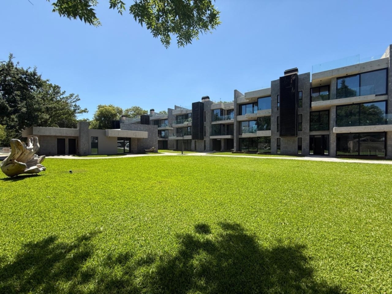 Desde el hall de ingreso ya se advierte el concepto de Fisherton Park: naturaleza y arte ambientan el complejo premium de Dix Desarrollos, diseñado por el galardonado Arq . Carlos Ott.