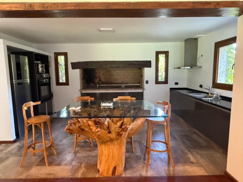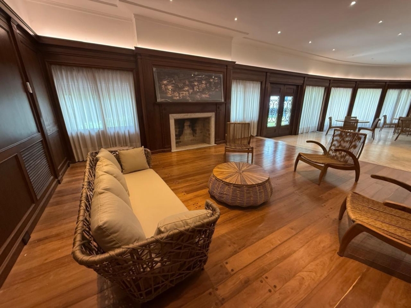 Precisamente, la casona de valor patrimonial, conserva sus paredes revestidas en madera y un hogar otorga calidez a la gran sala de estar amueblada por la exclusiva casa Wilson Tobal, también a cargo de ambientar los jardines exteriores y el entorno de la piscina.