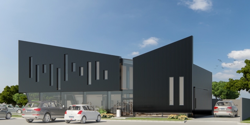 “El local cuenta con doble ingreso, tanto por Illia como desde Laprida, con dársenas de estacionamiento sobre las dos calles. A su vez en su parte trasera se planificó un portón para el ingreso de mercadería”, señala el constructor, quien describe además que “sobre un vértice de la construcción se ubica el área de servicios -baños y kitchenette-, obra que mantiene una flexibilidad según la necesidad del futuro inquilino”, explica Meneguzzi confiando a esta redacción que una cadena de gimnasios mostró interés por el inmueble que estará finalizado en julio próximo.