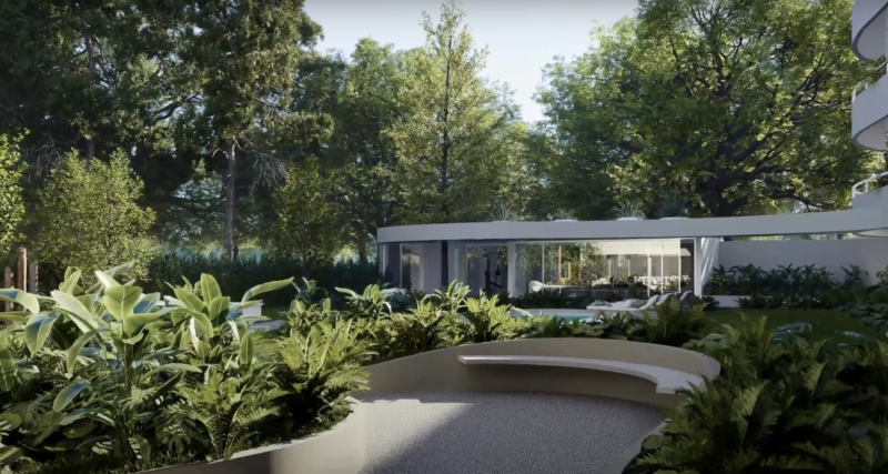 El proyecto se despega de la arquitectura tradicional proponiendo un edificio dominado por curvas, maximizando la luminosidad de sus unidades residenciales con un parque interno donde se alojan las amenidades ofrecidas por el complejo premium.