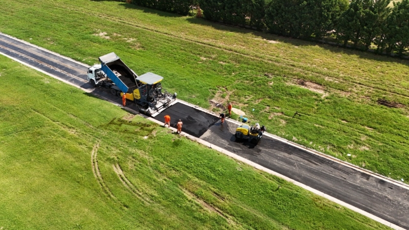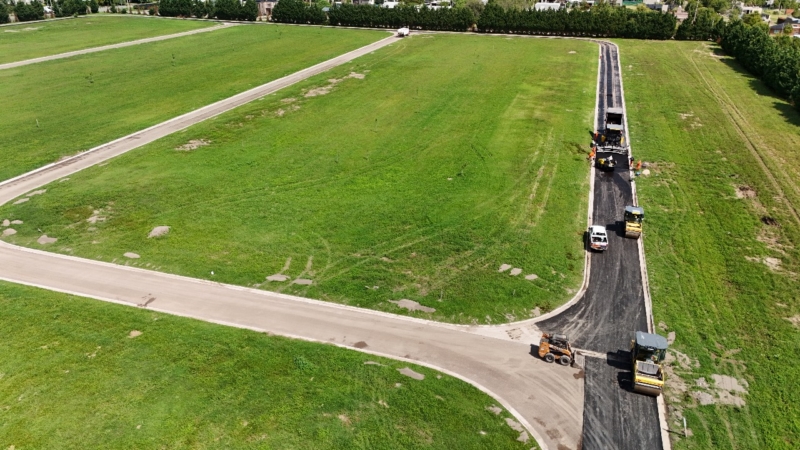 En cuanto a las obras de infraestructura, el progreso es notable. Actualmente, se están completando los trabajos de pavimentado de calles, lo que permitirá acceso 100% asfaltado a todos los sectores del barrio. “Se trata de 2700 metros lineales de asfalto con cordón cuneta, lo que implicó un trabajo previo de compactado y espumado bajo todo el recorrido. Además, ya se encuentra ejecutada la red de agua y cloacas, cubriendo toda la superficie del proyecto, y se han finalizado los trabajos de alcantarillado en todos los accesos principales y secundarios.”