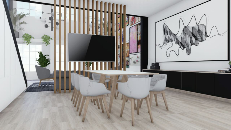 En su interior, el local tendrá la particularidad de contar con una galería de arte y decoración. «La idea es salir de la estructura tradicional de la inmobiliaria y construir una oficina donde se exponga arte y la gente tenga posibilidad no solo de encontrar su hogar, sino también de llevarse la decoración para el mismo. Las obras expuestas serán de artistas locales», comentó el cotitular.