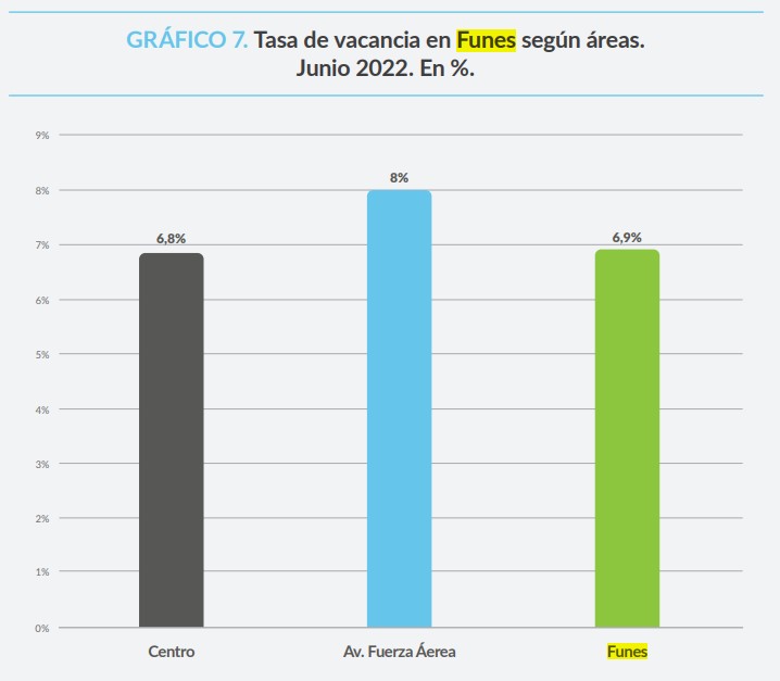 Además, el trabajo publicado incluye un análisis de las diferentes zonas. Fuerza Aérea, en su recorrido desde Yrigoyen hasta Galindo, es todavía la que presenta el mayor porcentaje de vacancia, con apenas el 8%.