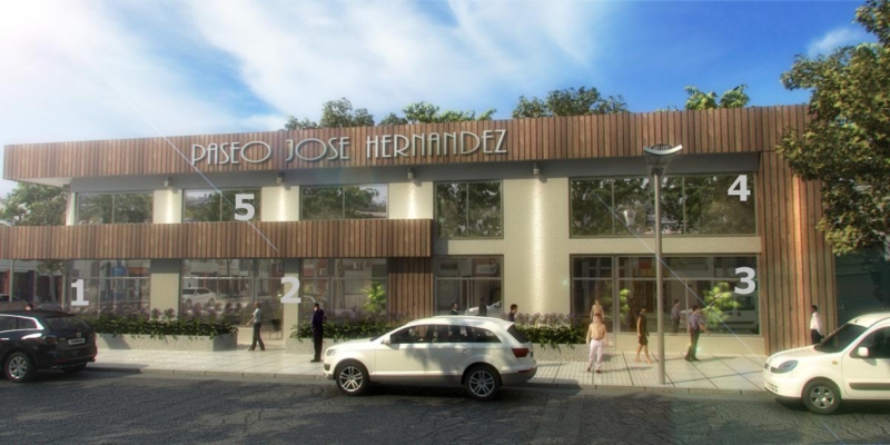 La primera etapa del Paseo José Hernández está finalizada hace dos años. Consta de dos espacios comerciales en los que actualmente funcionan una farmacia y una repostería, agregándose ahora tres nuevos locales distribuidos en la planta baja y el nivel superior del complejo.