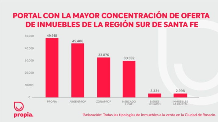 Uno de los datos más interesantes que se compartió y fue muy valorado por los corredores, es que Propia es el portal con la mayor concentración de oferta de inmuebles de la región sur de Santa Fe. Exactamente son 49.918 propiedades publicadas, seguido por Argenprop con 45.486 y ZonaProp con 33.876.