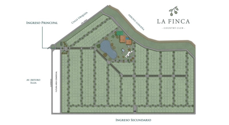 La Finca tiene 68 hectáreas divididas en espacios comunes y 443 lotes de 800 metros cuadrados. Será un barrio residencial y Club de Campo, con calles pavimentadas sin cordones, para que el verde sea el protagonista.