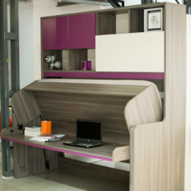 A este diseño innovador se le suma la Nido 3, que consiste en dos camas con escritorio integrado, pensada para habitaciones de niños. La “cama mágica” y su posibilidad de darse vuelta y revelar un escritorio también está entre las soluciones para espacios limitados.