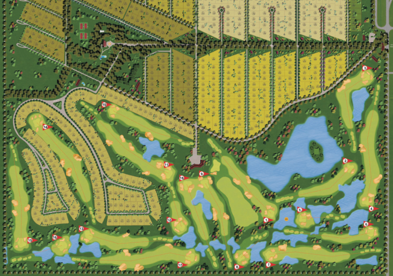 Los tees de salida definen recorridos de 7137 yardas para el negro, 6718 para el azul, 6342 para el blanco y 5945 para el rojo. Con greens de hasta 750 metros cuadrados, la cancha cumple con todas las normas de la USGA United States Golf Association y permite una adaptación a cualquier nivel de hándicap.