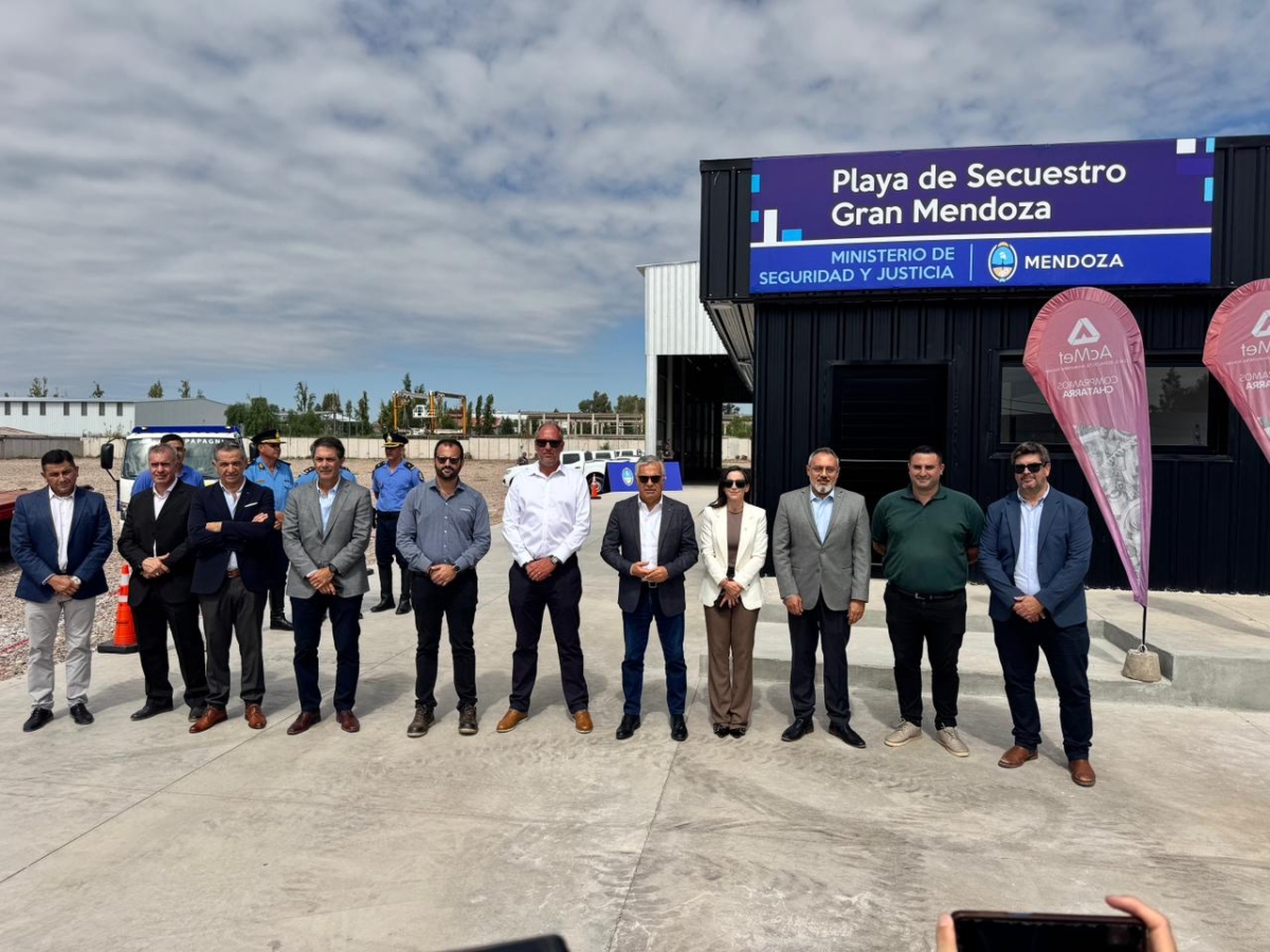 La inauguración del predio contó con la presencia del gobernador de Mendoza, Alfredo Cornejo, y la ministra de Seguridad y Justicia, Mercedes Rus, quienes recorrieron las instalaciones donde se aplicará un sistema tecnológico para ordenar el proceso de secuestro vehicular y garantizar su trazabilidad.