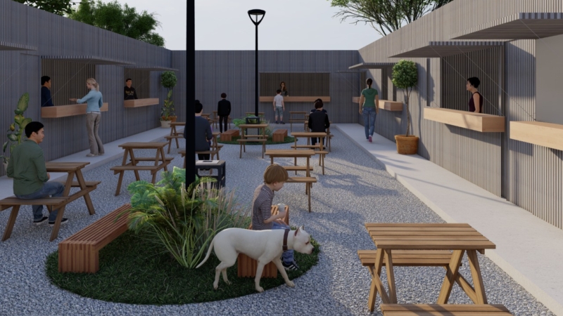 Según adelantó Darío Vilches, empresario detrás de Gorostiaga, en el predio de unos 740 metros cuadrados, emplazado sobre Yrigoyen a la altura de Leloir, se instalará una cafetería con productos caseros, locales de comida japonesa, venezolana y peruana, y una barra de tragos de autor. En total, habrá entre ocho y nueve locales con diferentes alternativas y capacidad para entre treinta y cuarenta mesas.