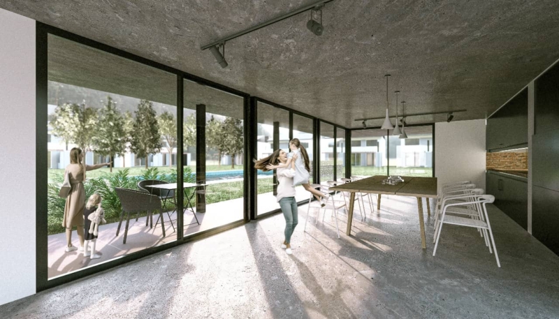 Habrá un único acceso vehicular y peatonal por la calle Vera, sobre la que se emplazará una fila de casas. La otra hilera se ubicará paralela a Galindo, dejando esta calle libre para instalar una piscina y un quincho de uso común. Este último, con capacidad para 30 personas, se encuentra equipado con parrilleros, depósito, baño, gimnasio y playroom. Contará además con un acceso por calle Galindo, de modo que las personas que no son residentes puedan entrar sin necesidad de pasar por el predio.