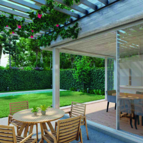 El condominio, delimitado por un cerco verde para brindar seguridad y privacidad a la vez, dispone de un acceso único con portón automático.