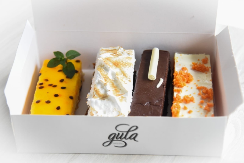 Gula tomó reconocimiento gracias al enfoque que ofreció Jorge centrado en “porciones individuales”, las cuales denominan como “lingotes”. “Hoy es el sello que nos permite que el cliente nos reconozca. La estrella de nuestro local es la caja de cuatro porciones, la cual el cliente la puede llevar variada con la cantidad de gustos que elija”, reconoció el titular del emprendimiento.