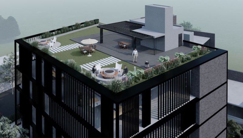 La galería comercial semicubierta, ubicada en la planta baja está prácticamente vendida: “fue un proceso exitoso, con muy buena demanda de locales, solo restan vender dos”, precisó el profesional, agregando: “la venta de las oficinas también va a buen ritmo”. Cabe destacar que a esas unidades se llega a través de un núcleo de acceso controlado para el ingreso al resto del inmueble. El proyecto incluye además, una terraza ajardinada que funcionará como lugar de descanso.