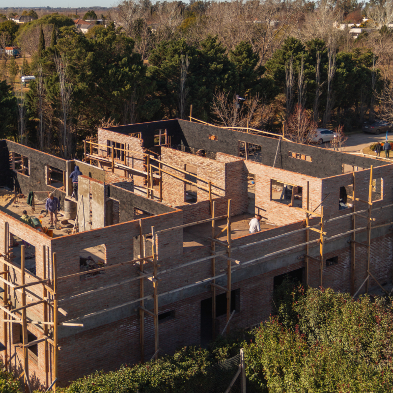 Otro sector del masterplan de Rozín en plena ejecución es el complejo de casas ubicadas detrás del hotel, cuyo destino es el alquiler temporario, un atractivo negocio para aquellos que buscan altas rentabilidades con la comercialización de inmuebles en Funes.
