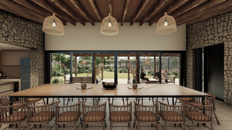 Un centro comercial de proximidad con una escuela se ubican sobre el acceso. Un recorrido articula el barrio hasta la crystal lagoon en el centro donde se desarrollan edificios de media densidad y un hotel”, describe entusiasta el Arq Martín Bodas de BMA Estudio a cargo del masterplan. Agregando: “Crystal Lagoon será el mega amenity y articulador de este proyecto”Entre los amenities más destacados, además de la laguna, contará con un área deportiva que tendrá dos canchas de tenis y dos canchas de pádel, en sincronía con un SUM que consta de dos quinchos totalmente equipados, vestuarios y baños completos.