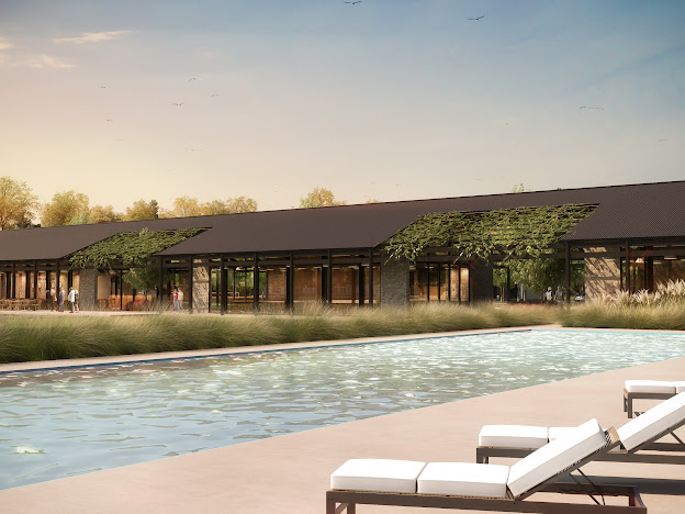 A su vez el barrio privado ya muestra las primeras imágenes de lo que será el criterio arquitectónico de los espacios comunes. En los renders se puede apreciar el ingreso principal donde la piedra como materialidad tiene un peso predominante, tal el espíritu cuyano de La Finca I, con presencia de amplios espacios comunes verdes.
