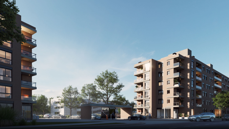 Estará conformado por 7 bloques de 5 pisos, alcanzando un total de 428 unidades con cochera. Todos los departamentos tendrán cochera y balcón con parrilla que dará a un extenso sector verde exclusivo de más de 18.000m2.