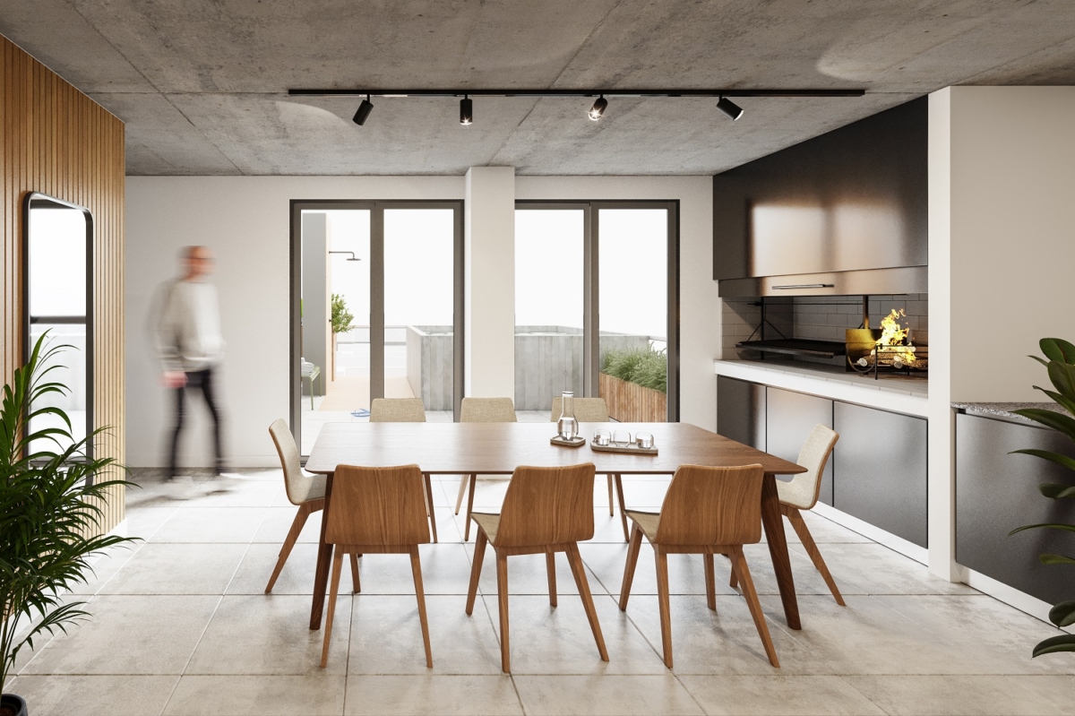 Este nuevo desarrollo se compone de dos torres, una de planta baja y 6 pisos, y otra de planta baja y 4 pisos. Los departamentos disponibles abarcan opciones de 1, 2 y 3 dormitorios, ofreciendo además patios y un local comercial en planta baja. Para mayor comodidad, se dispondrá de cocheras en el subsuelo y amenities que incluyen un quincho, piscina y solarium.