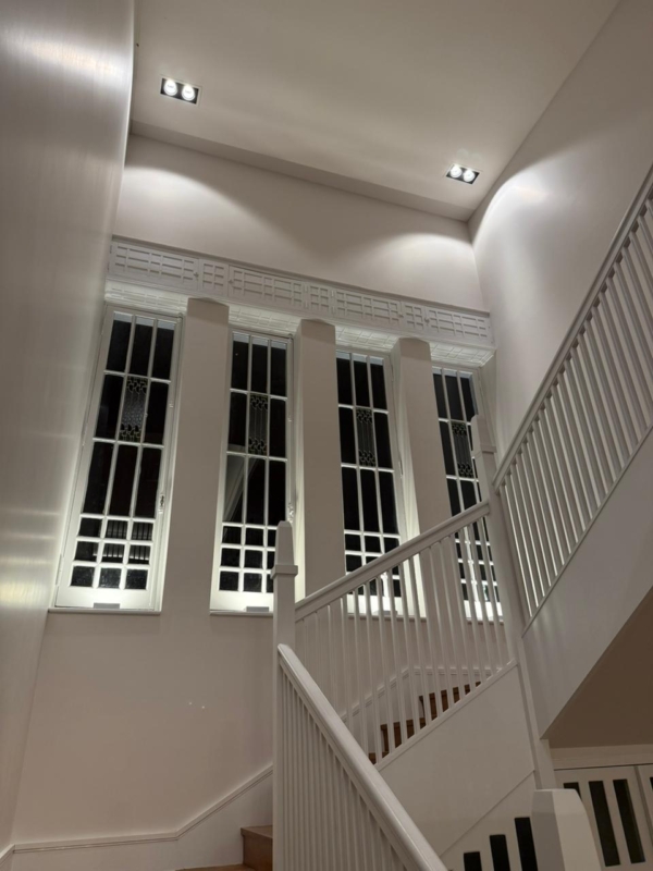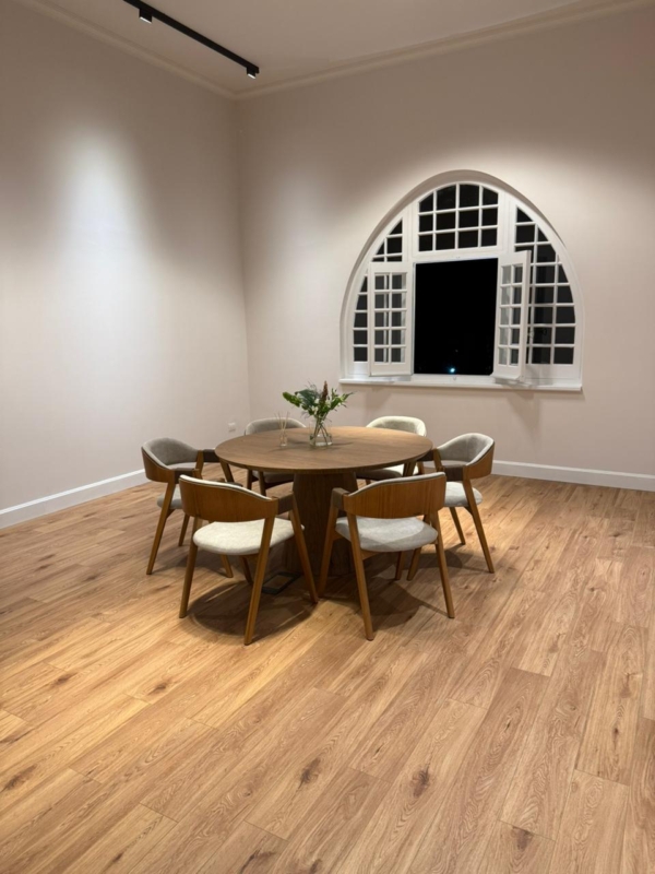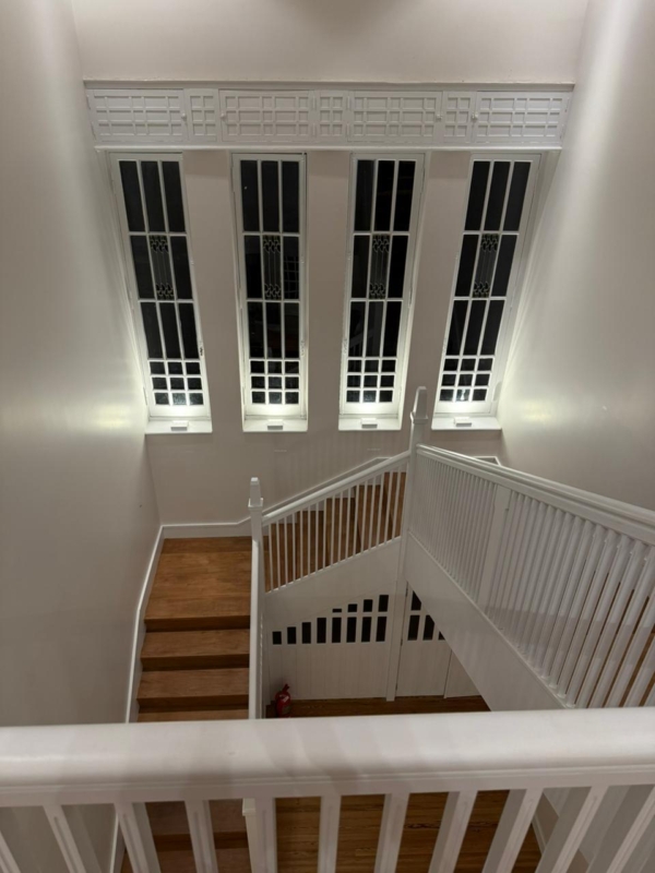 La puesta en valor estuvo a cargo del Estudio Di Prinzio Romano, que condujo el proyecto desde la evaluación de daños hasta la etapa final de obra. Se restauraron la boiserie en madera tallada, las carpinterías nobles, los techos, chimeneas, escaleras y vitraux. En los casos en que piezas originales no pudieron recuperarse, se realizaron réplicas exactas, preservando la impronta artesanal de la casona.