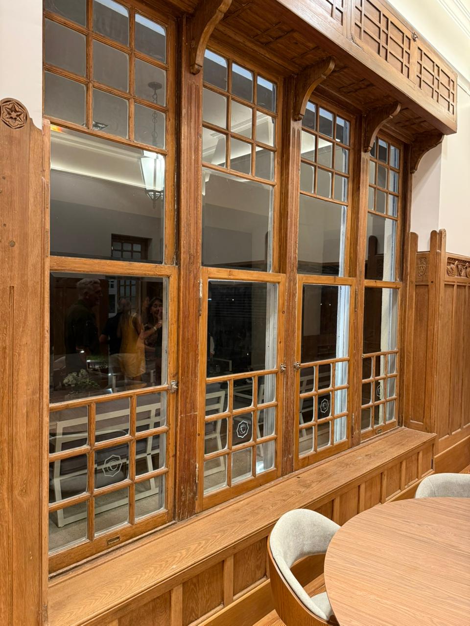 La puesta en valor estuvo a cargo del Estudio Di Prinzio Romano, que condujo el proyecto desde la evaluación de daños hasta la etapa final de obra. Se restauraron la boiserie en madera tallada, las carpinterías nobles, los techos, chimeneas, escaleras y vitraux. En los casos en que piezas originales no pudieron recuperarse, se realizaron réplicas exactas, preservando la impronta artesanal de la casona.