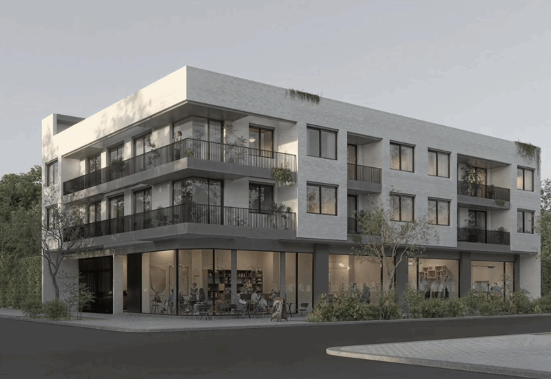 El proyecto refuerza la mixtura de usos característica del casco histórico y recupera una esquina tradicional con alto flujo peatonal y vehicular.