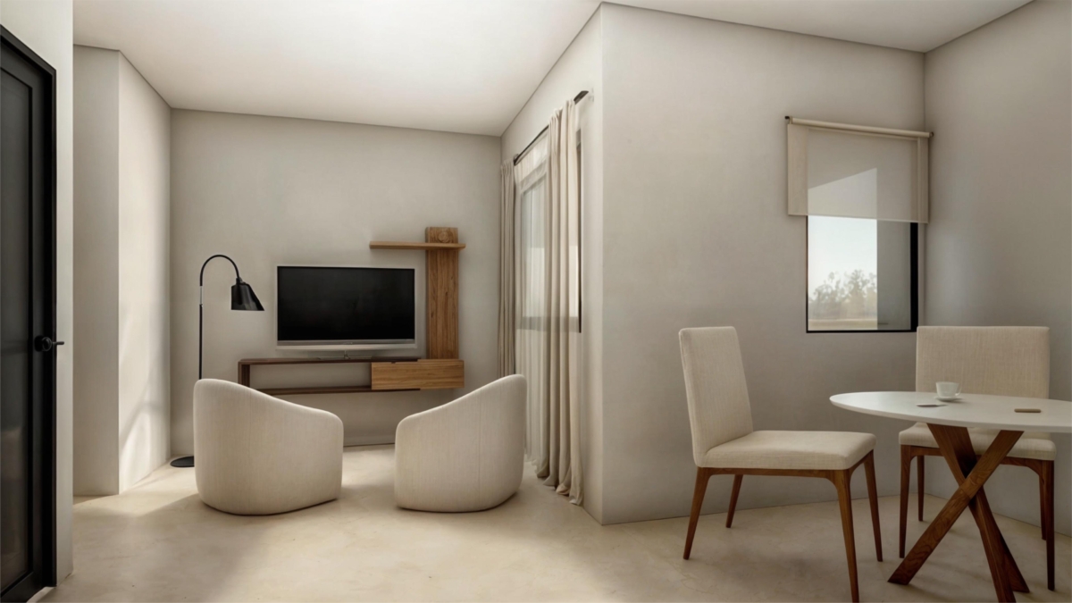 Pisos y revestimientos en porcelanato y sistemas de climatización avanzados.