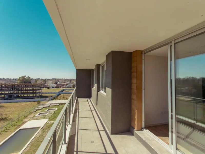 Condominios Fisherton Golf: por 150.000 dólares y expensas de 75.000 pesos: sobre calle Eva Perón 9150, con ingreso también sobre calle Azcuénaga, frente al Jockey Club Rosario. Departamento al frente, con vista al Parque, de 2 dormitorios, 2 baños (1 en suite), living comedor apaisado a la calle, cocina semi integrada con comedor diario, balcón terraza amplio con baulera y lavadero independiente. El valor incluye cochera con lugar para estacionar 2 autos y 1 baulera en el primer subsuelo. Puertas de madera maciza, pisos de ingeniería en ambiente, porcellanato en núcleos húmedos, finas terminaciones en el interior. Seguridad por monitoreo y alarmas perimetrales, pileta exterior, pileta climatizada interior, gimnasio, sala de juegos, SUM, microcine, ingreso imperial.