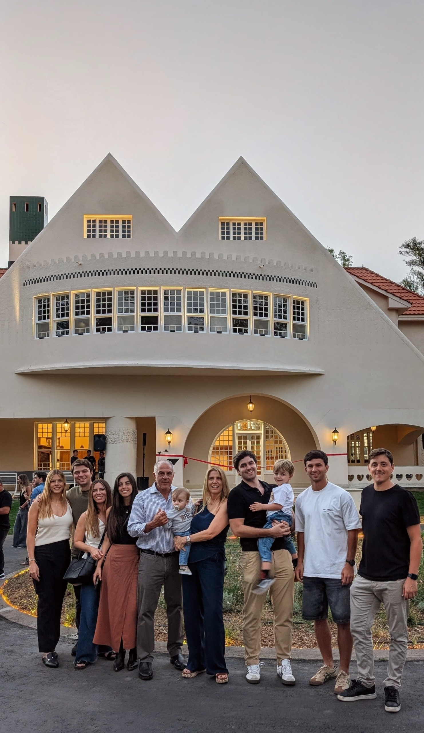 Junto a la camiseta se exhibe un dibujo del arquitecto funense Francisco De Gottardi, perteneciente a una familia histórica de la ciudad. Tras el incendio del Club House en 2022, De Gottardi ilustró la casona original como gesto de memoria y homenaje. Hoy, esa obra acompaña al cuadro de Messi, uniendo dos momentos que marcaron profundamente la historia del barrio.