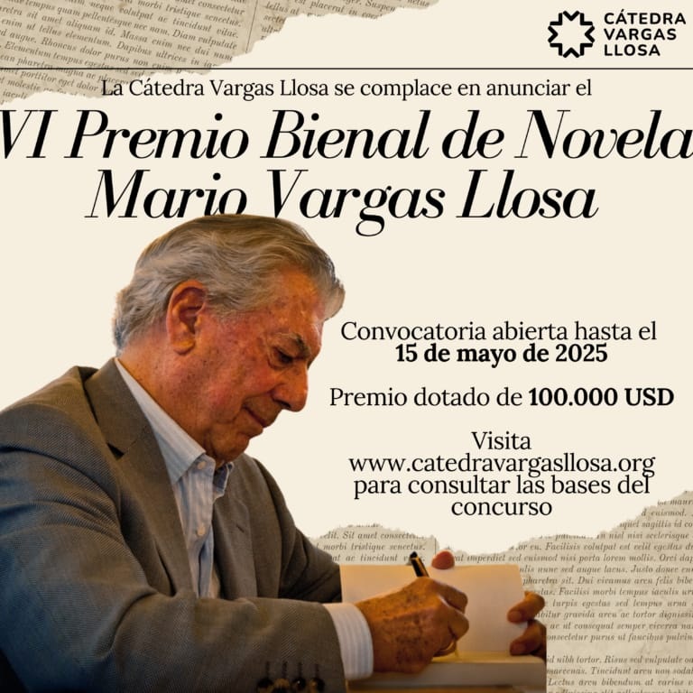 “La Cátedra Vargas Llosa tiene el gusto de anunciar la apertura de la convocatoria al VI Premio de la Bienal de Novela Mario Vargas Llosa”, según se expresa esta organización institucional española en su web: catedravargasllosa.org.