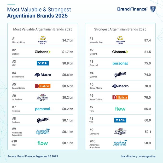 La clasificación completa, información adicional, gráficos, más información sobre la metodología y definiciones de términos claves están disponibles en informe Brand Finance Argentina 10 2025 ranking.