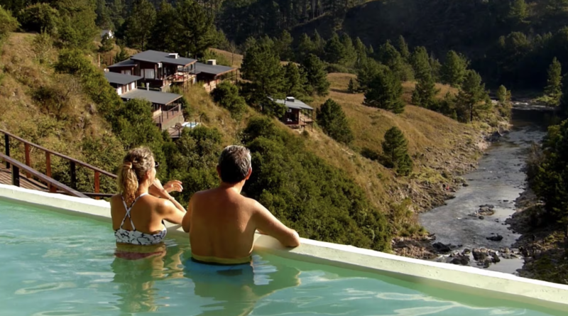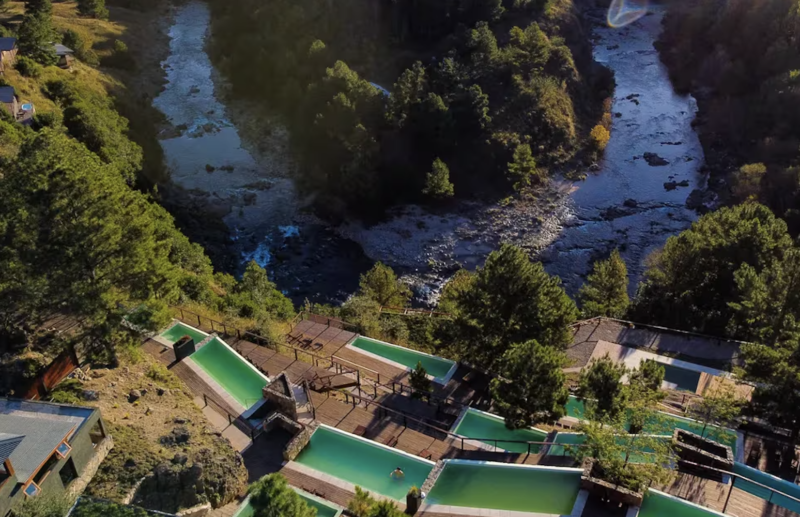 Ahora, además, tras una trepada importante se despliega un llamativo complejo turístico, único en su tipo en el Valle de Calamuchita: cuenta con una veintena de piletas climatizadas, al aire libre y escalonadas en la montaña. Impactan a primera vista.