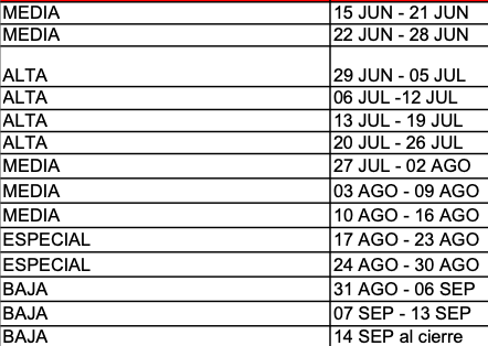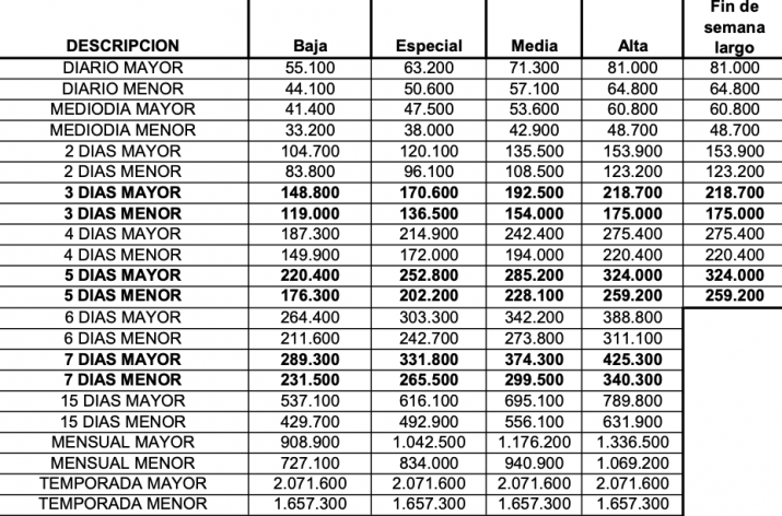 El ticket más económico se podrá conseguir en temporada baja (solo tres semanas desde el 31 de agosto) a un valor de $55.100, mientras que para el menor por $44.100.